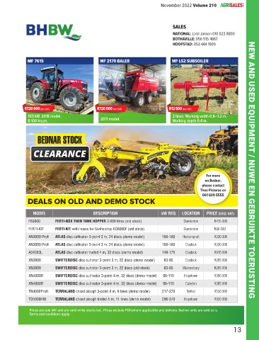 Prices exclude VAT and are valid while stocks last. Prices exclude PDI (where applicable) and delivery. Bednar units are sold as is.